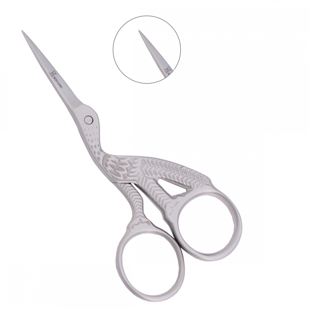 “Stork Scissor” hand-filed German Stainless Steel sharp pointed straight blade "silver" stork scissor for silk wrap or fiberglass 3.5”
