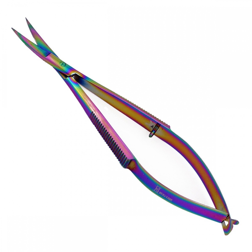"Brow Spring Scissor Titanium" German stainless steel supreme quality curved blade 5.0". Correct